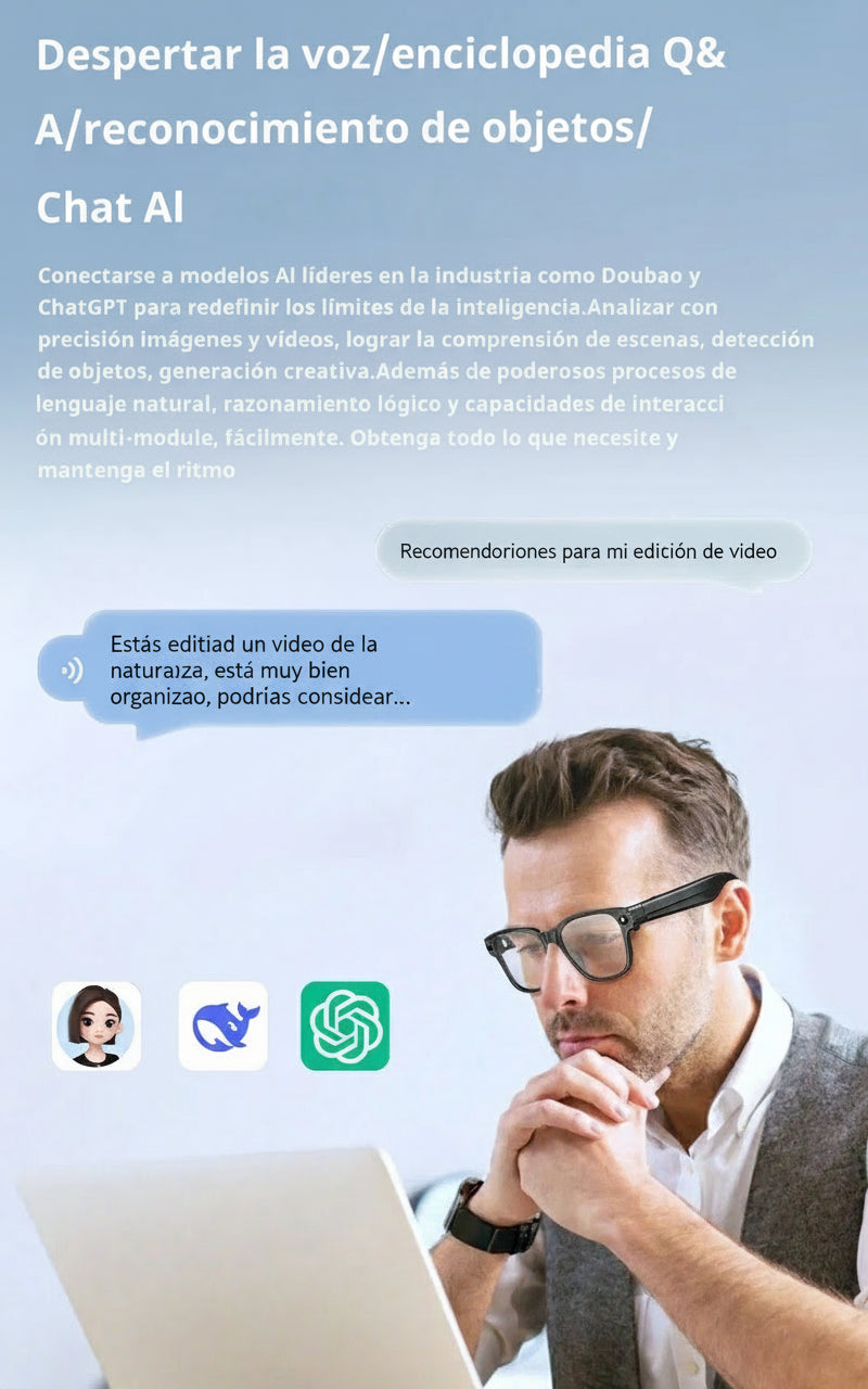 Gafas con (cámara + micro + IA), para Creadores Inteligentes